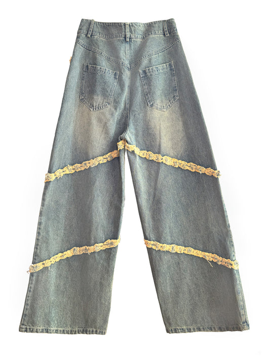 Elyoya Double Waist Patchwork Wide-Leg Jeans